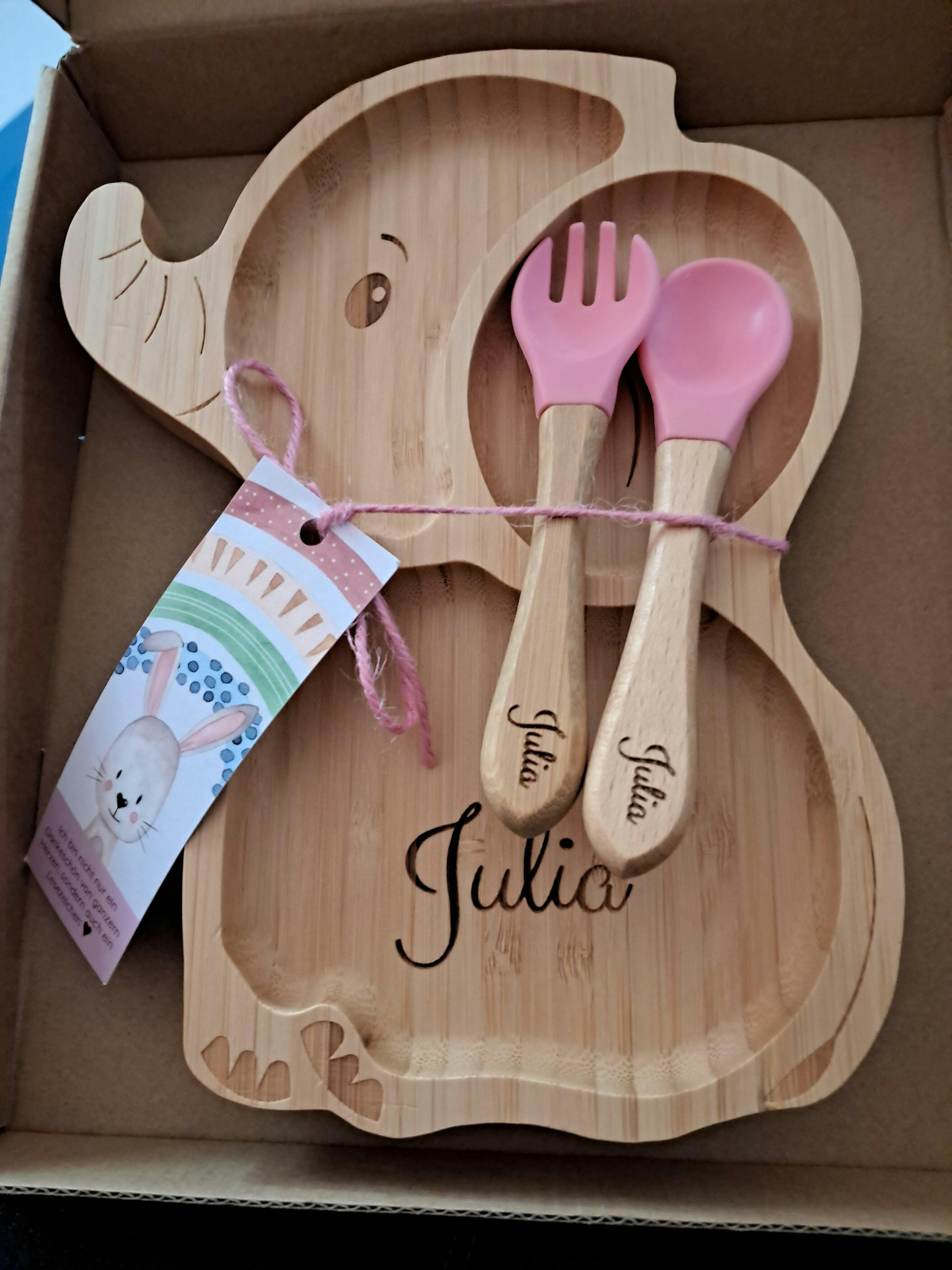 💬 Robustes Bambusdesign, melaminfrei und sicher – ein tolles Geschenk und ideal für den Alltag der Kleinen!