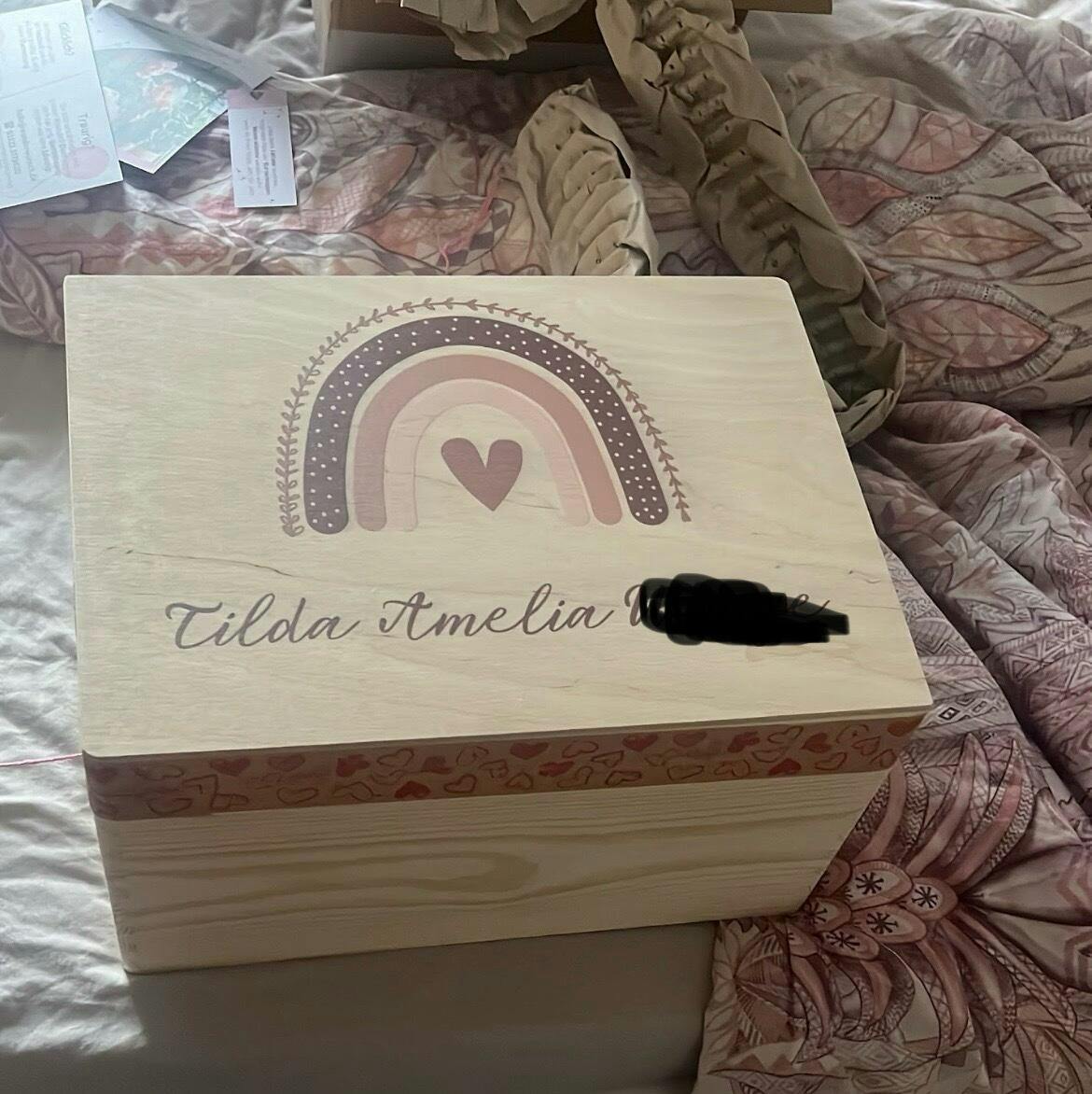 Ob zur Geburt, Taufe oder einfach als liebevolles Geschenk – unsere Erinnerungskiste verstaut deine wertvollsten Erinnerungen sicher und schenkt Freude, die Generationen überdauert.