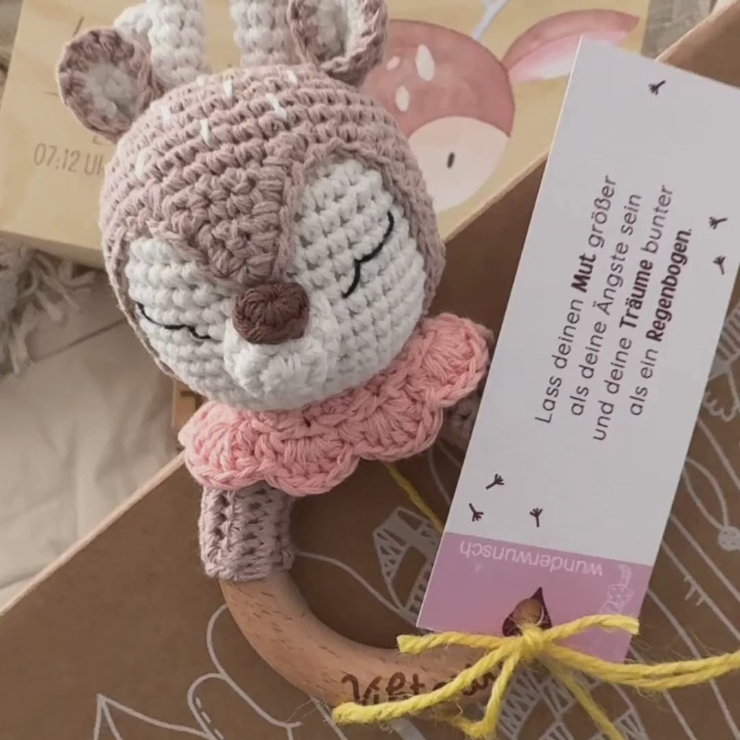 Geburts-Bundle - Erinnerungsbox Holz + LED Nachtlicht + Greifling personalisiert - Tier Aquarell